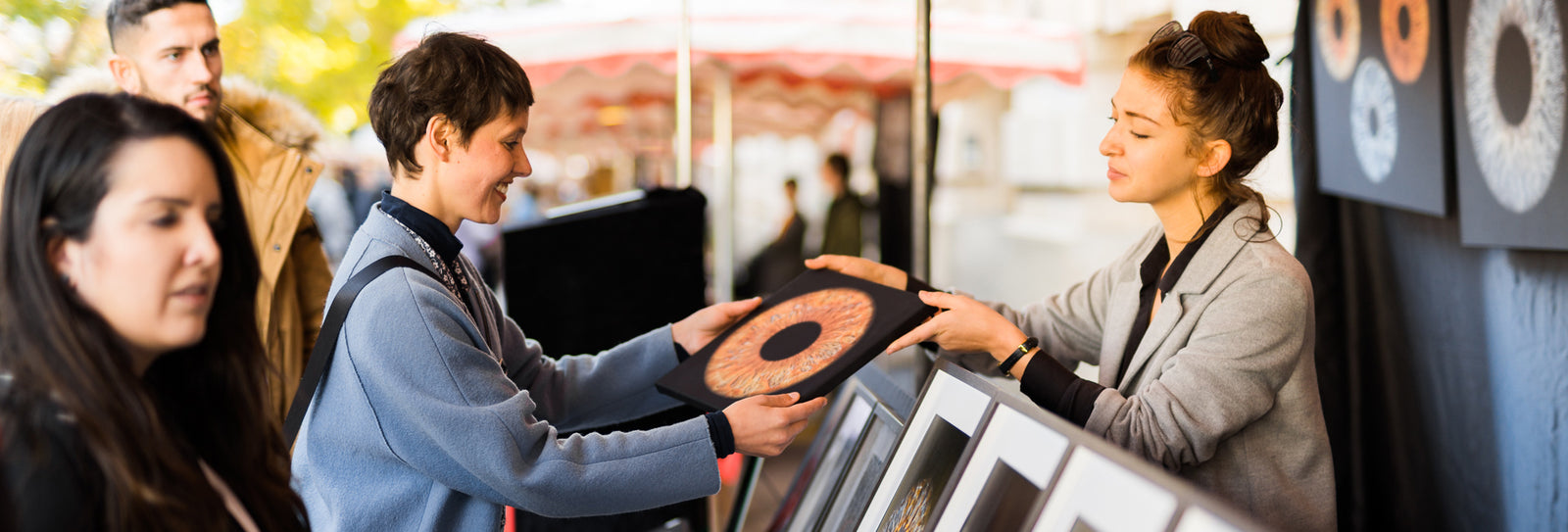auf dem Berliner Kunstmarkt ohne Termin, ausgewählten Weihnachtsmärkten oder in unserem Atelier mit Termin.